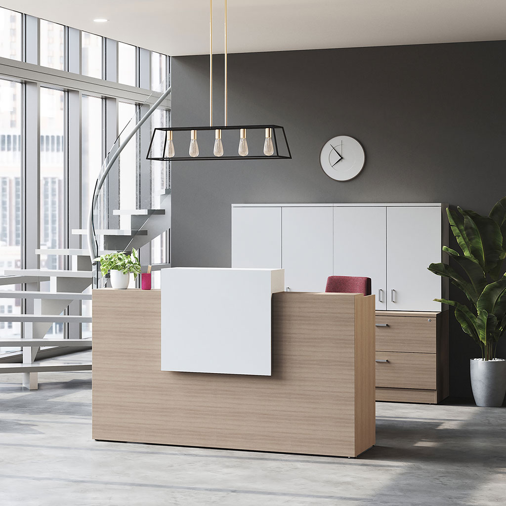Blending timeless design with practical functionality, Newland reception desks create a welcoming first impression that reflects confidence and warmth. Its clean lines, refined finishes and modular design highlight the simplicity and elegance that define the Newland series. Designed to integrate seamlessly with private offices, open workspaces or collaborative areas, they offer lasting quality and versatility. With Newland, every detail supports productivity, comfort and lasting appeal – making it the perfect centerpiece for any modern reception environment.